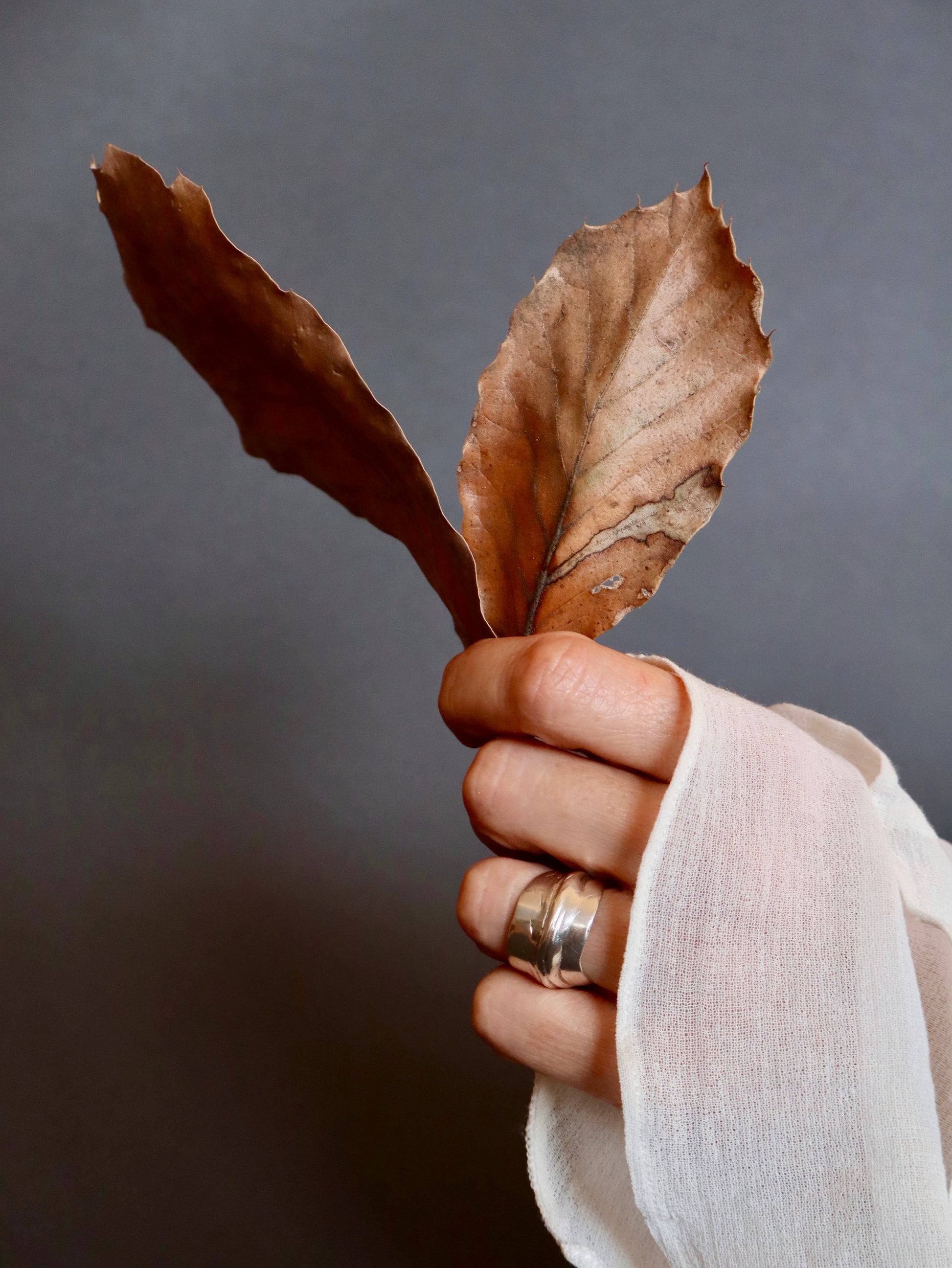 Pieza creada con técnica de cera perdida, que busca representar de forma artística y abstracta los delicados pliegues de las telas.
