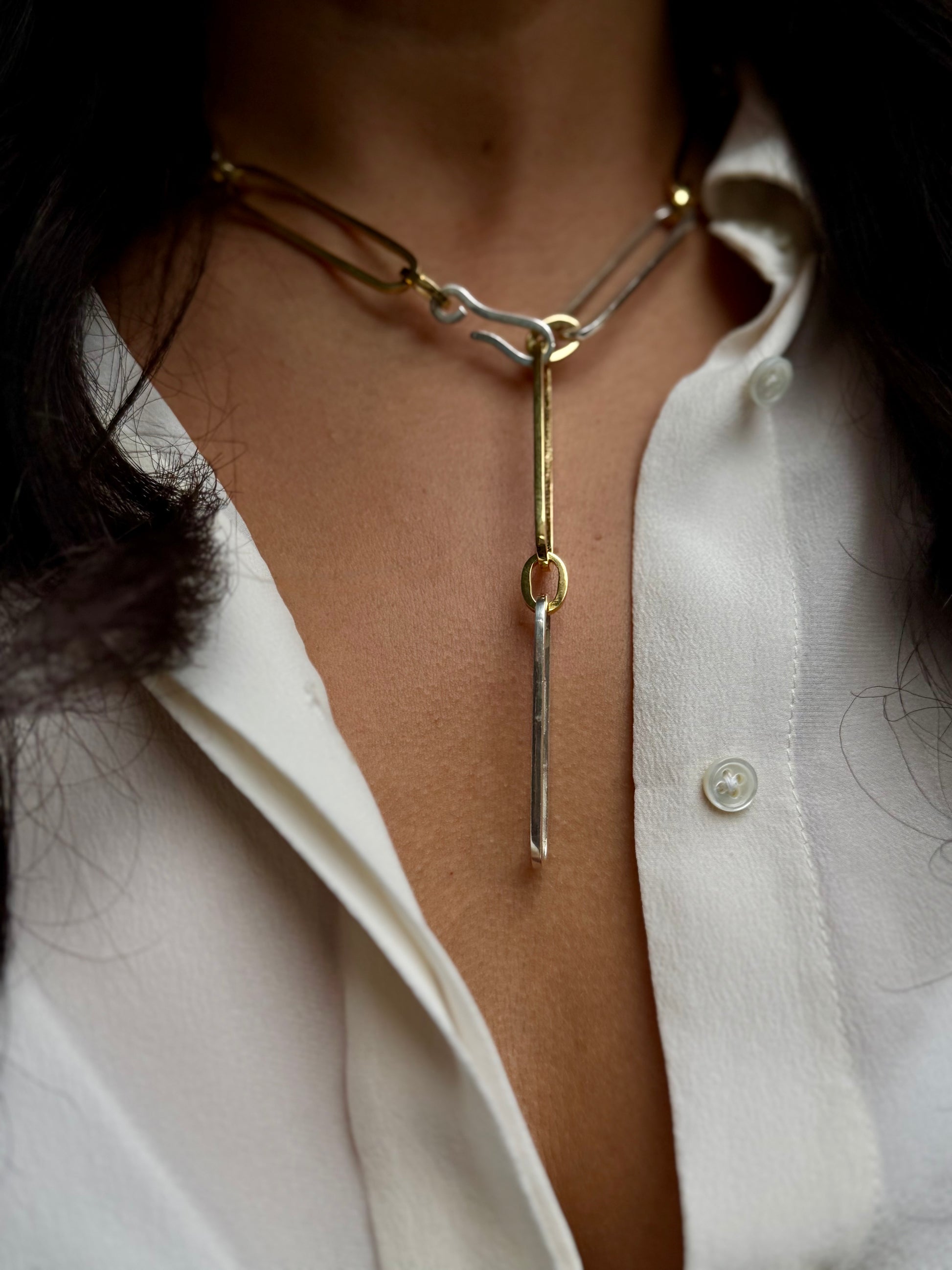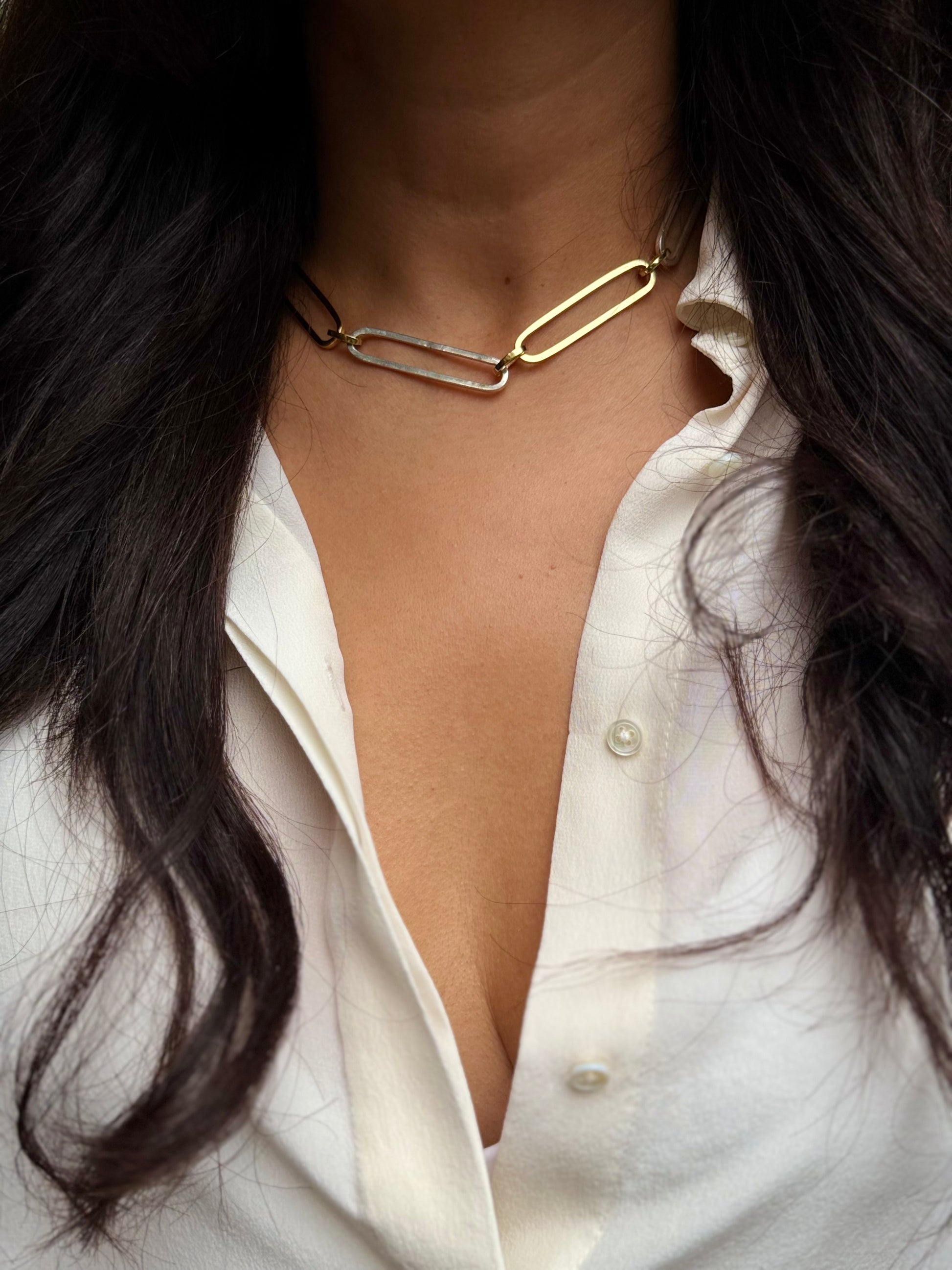 Eslabones grandes de plata 925 con eslabones chicos de plata con baño de oro.
